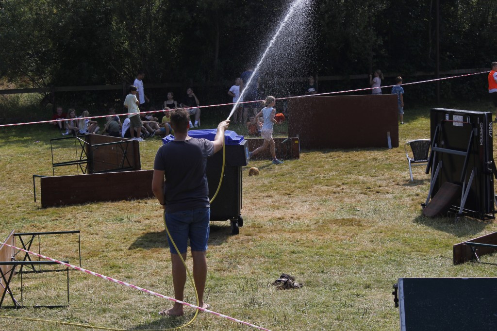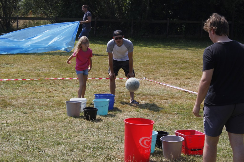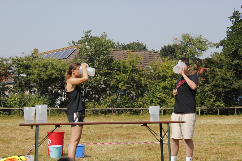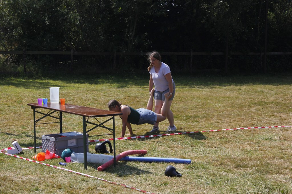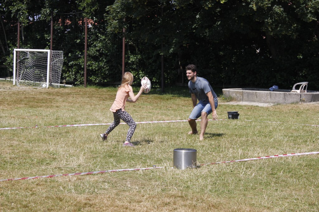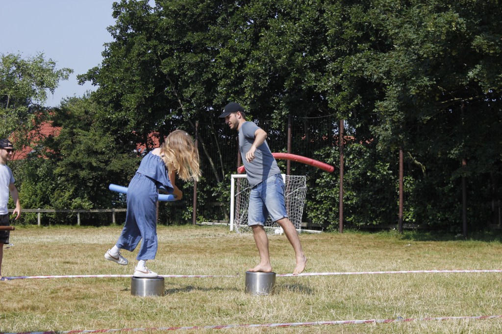 Die Gruppen stellten sich in 11 Challenges den Betreuern entgegen. Unter der gleißenden vormittags Sonne kämpfte jeder einzelne mit seiner ganzen Kraft. Weitsprünge, Weitwürfe, Tauchgänge, Wettessen/ Wetttrinken und ein sehr spannendes Schubkarren Rennen brachte die Menge zum jubeln. So Spiele verlangen einem alles ab was ein großen Festmahl zur Folge hatte. Am Nachmittag ging es nicht weniger spannend weiter… Die Revanche in Fortnite stand an. Das Fortnite Turnier holte das letzte aus den Kämpfer-innen heraus. Am Abend mussten auch noch die grauen Zellen ran. Das Spiel eins, zwei oder drei stand vor der Tür. Jeder konnte sich den härtesten Fragen der Showmaster stellen und zeigen was er alles kann.