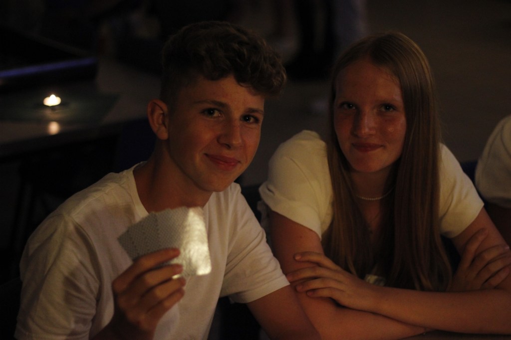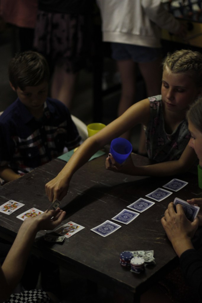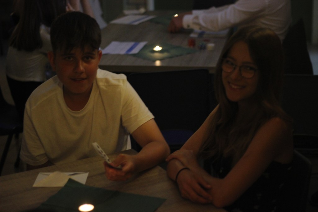 Pünktlich um 19:00Uhr waren dann alle fertig. Kinder und auch die Betreuer/innen!!! Endlich konnte der von den Kindern häufig thematisierte Casinoabend starten. Ob Black Jack, Poker und Roulette im Nobelcasino oder Kicker, Wasserpong und Pferderennen im Hinterhofcasino, alles war dabei. Die Pärchen zockten eifrig, um am Ende mit dem meisten Geld siegen zu können. Mal erfolgreich:), mal eher weniger :(…dennoch waren alle immer ehrgeizig und mit vollem Einsatz dabei. Somit ist der Casinoabend auch in diesem Jahr wieder ein Tag an den die Kinder sich noch lange erinnern werden.