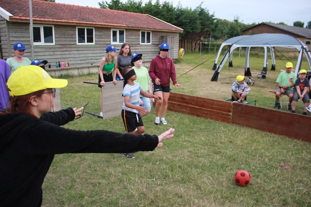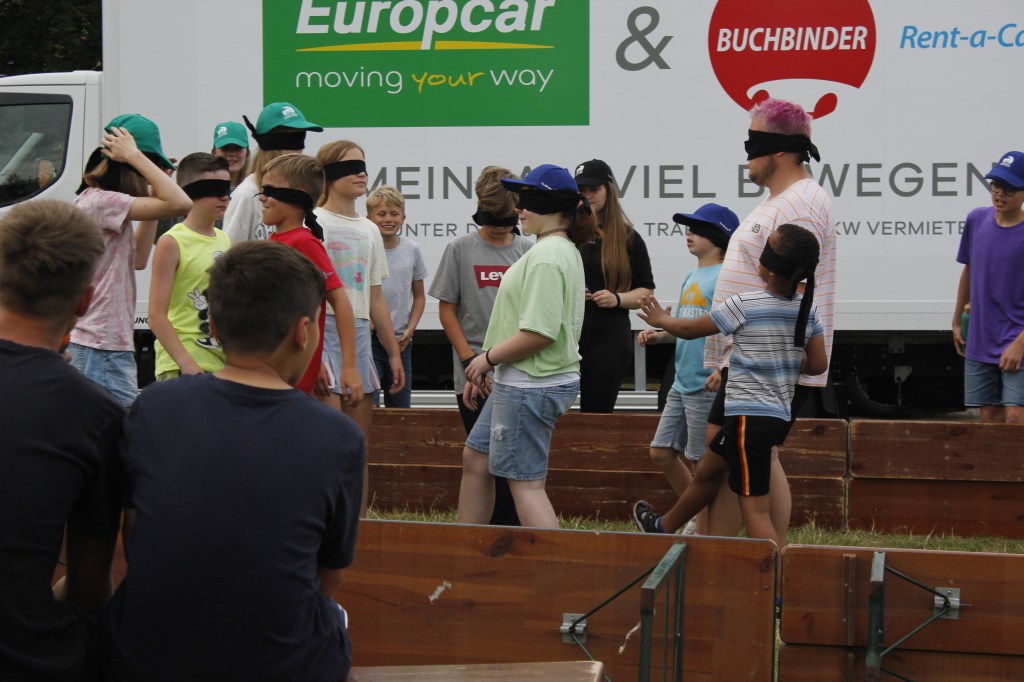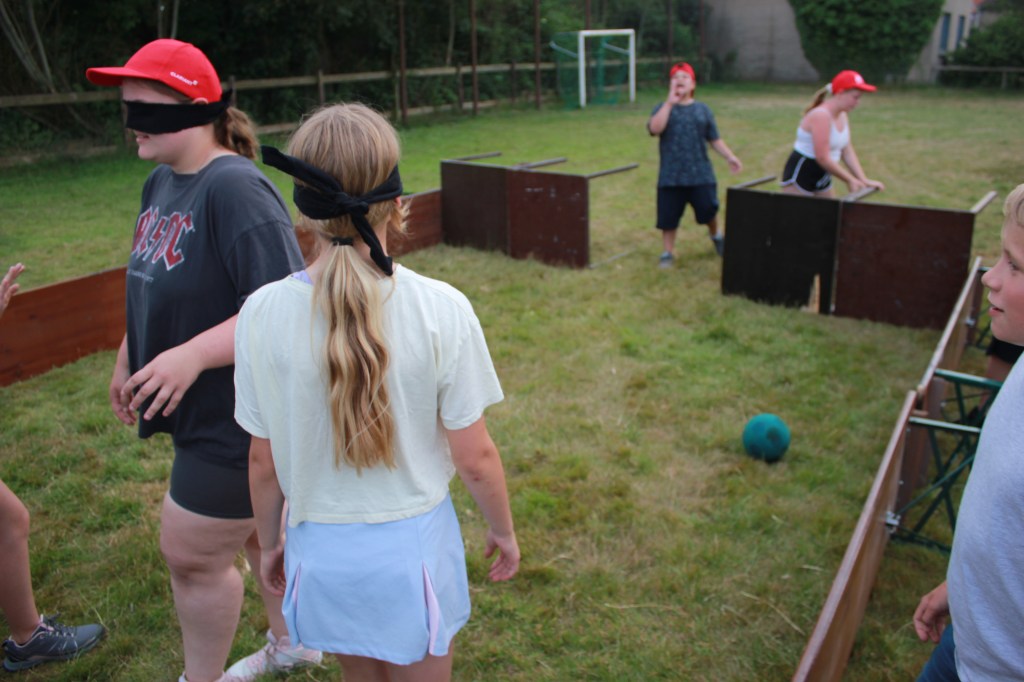 Als Abendprogramm haben wir uns für Blindkick entschieden. Ein Spiel bei dem sich zwei Kinder zusammentun, wobei einer eine Augenbinde trägt und vom anderen ferngesteuert wird, um in einem Team von 5 Spielern einen Fußball ins Tor zu schießen. Chaos, Lautstärke und eine ganze Menge Spaß!