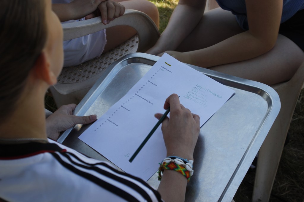 Am Nachmittag stand das Spiel „Rekordbörse“ auf dem Programm. Den Kindern wurden Schätzfragen zu verschiedenen Themen gestellt, wie zum Beispiel „ Unsere Umwelt, „Technik“ oder „Der Mensch“ . Die Kinder hatten Spaß daran, ihre Gehirnzellen anzustrengen und ihre Schätzungen abzugeben. Zwischen den Fragen wurden auch Minispiele eingestreut, um die Kinder zu unterhalten und ihre Energie hochzuhalten.