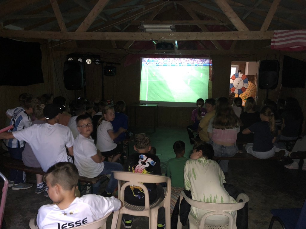 Der Abend brachte uns zwei großartige Optionen zur Entspannung und Unterhaltung. In der Scheune konnte man das EM-Halbfinalspiel zwischen Frankrich und Spanien verfolgen. Die Begeisterung der mitfiebernden Kinder war ausgelassen.