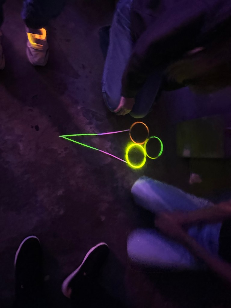 Abends wurde dann noch mal die Scheune abgerissen. Knicklichter dürfen dabei nicht fehlen.