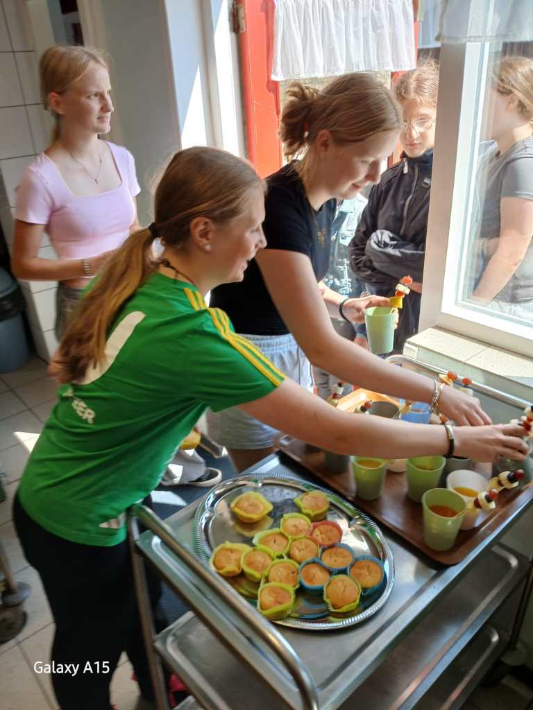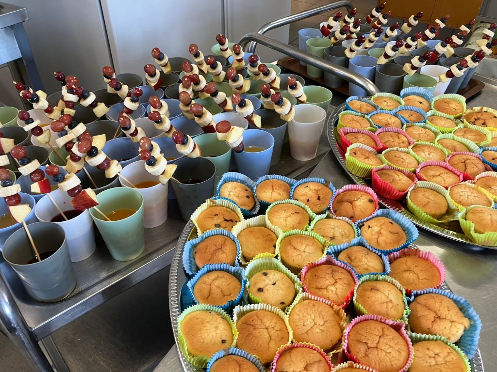 Für die Ankunft haben und Gaby & Martina, unser Küchenteam, Mocktails mit Obstspießen für alle vorbereitet 😋