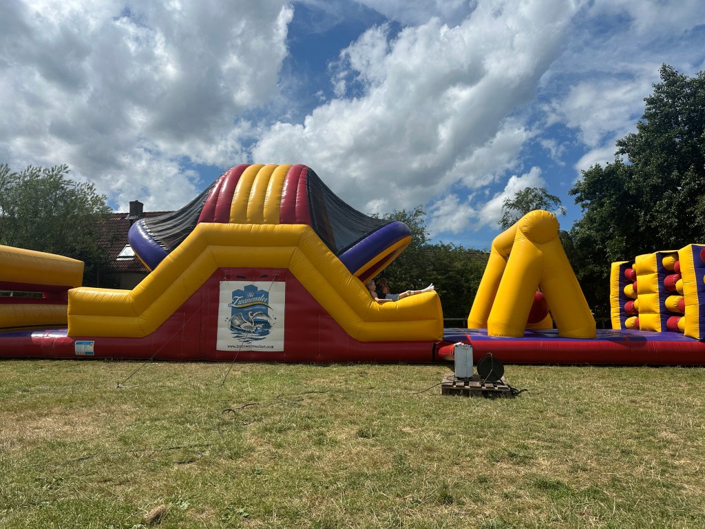 Zur Mittagszeit wurde es richtig spannend: Der Zirkus war in der Stadt! Es gab verschiedene Stationen, die die Kinder erkunden konnten. Besonders beliebt war die riesige Hüpfburg mit Wasserrutsche, auf der die Kids ausgelassen herumgehüpft sind. Beim Nägel in einen Stamm schlagen haben sie versucht, mit möglichst wenigen Schlägen den Nagel zu versenken – eine echte Herausforderung! Außerdem gab es Ballon-Dart, Entenangeln, Glücksrad, Torwandschießen und eine Waffelstation, an der die Kinder sich selbst leckere Waffeln backen konnten.